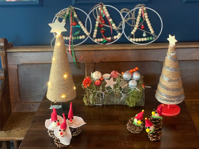 Na het succes van het herfstknutselen, zijn een aantal dames en een tweetal heren aan de slag gegaan om iets moois voor kerst te maken.